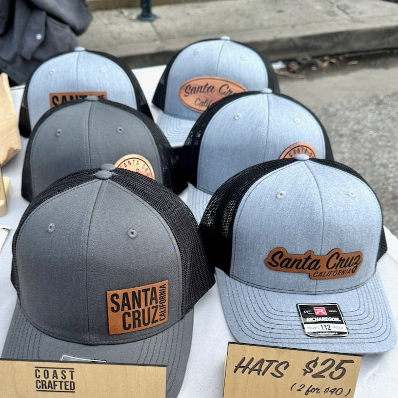 Some of our most popular hats celebrate towns small and large and other places of interest! Any time we do a market, we always try to bring some local-specific hats or hat patches, and they always do well! We also make local souvenir hats for shops around the state and they're always well-received by visitors and locals alike!