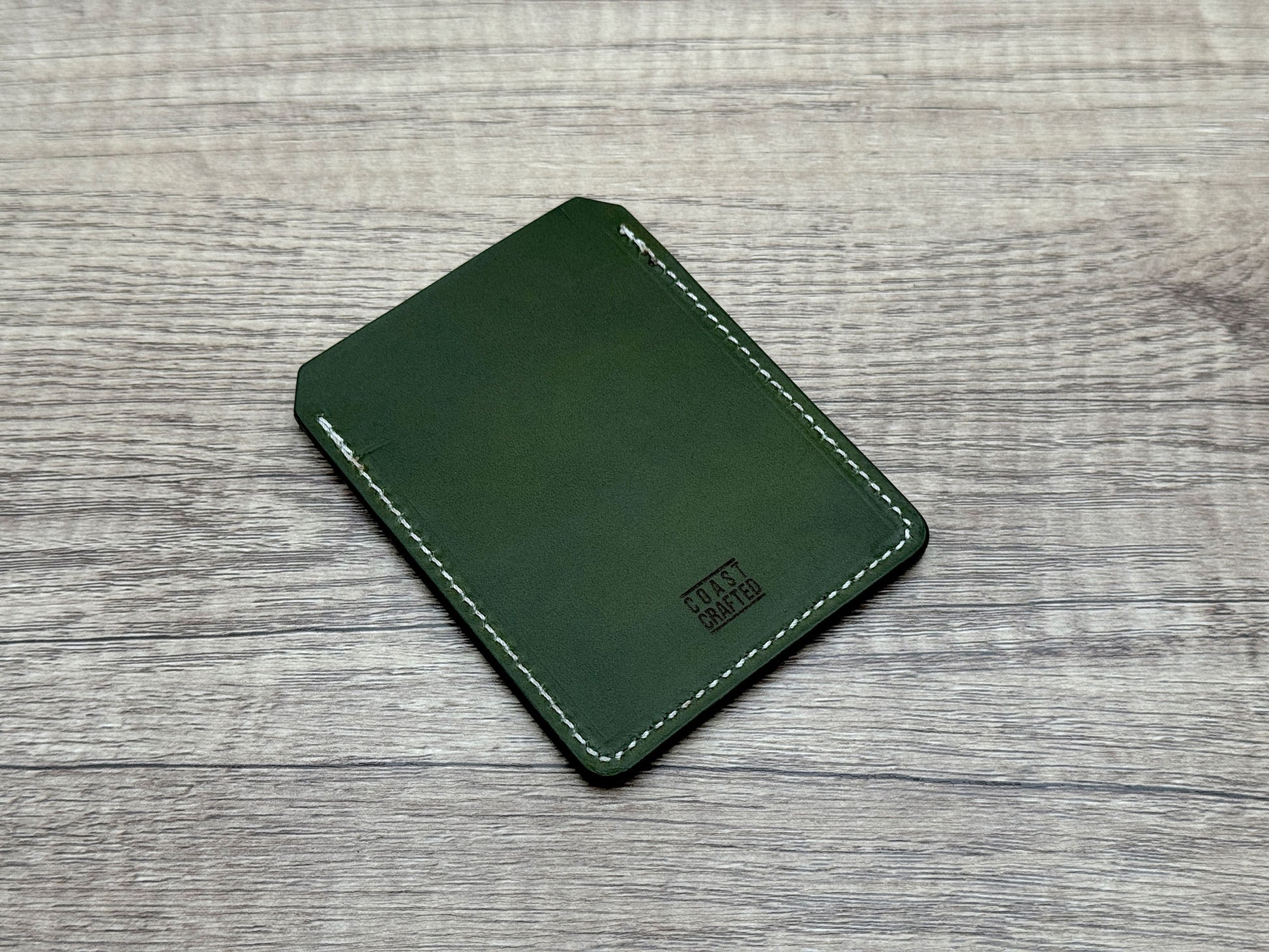Independently crafted in California, the Stinson Slim 2-pocket card wallet is great for folks that don't want something huge and bulky. It's great for as few as 2 cards and can be broken-in to accommodate 6 or 8 cards. You can also fold a little cash and tuck it into one of the pockets if you'd like.